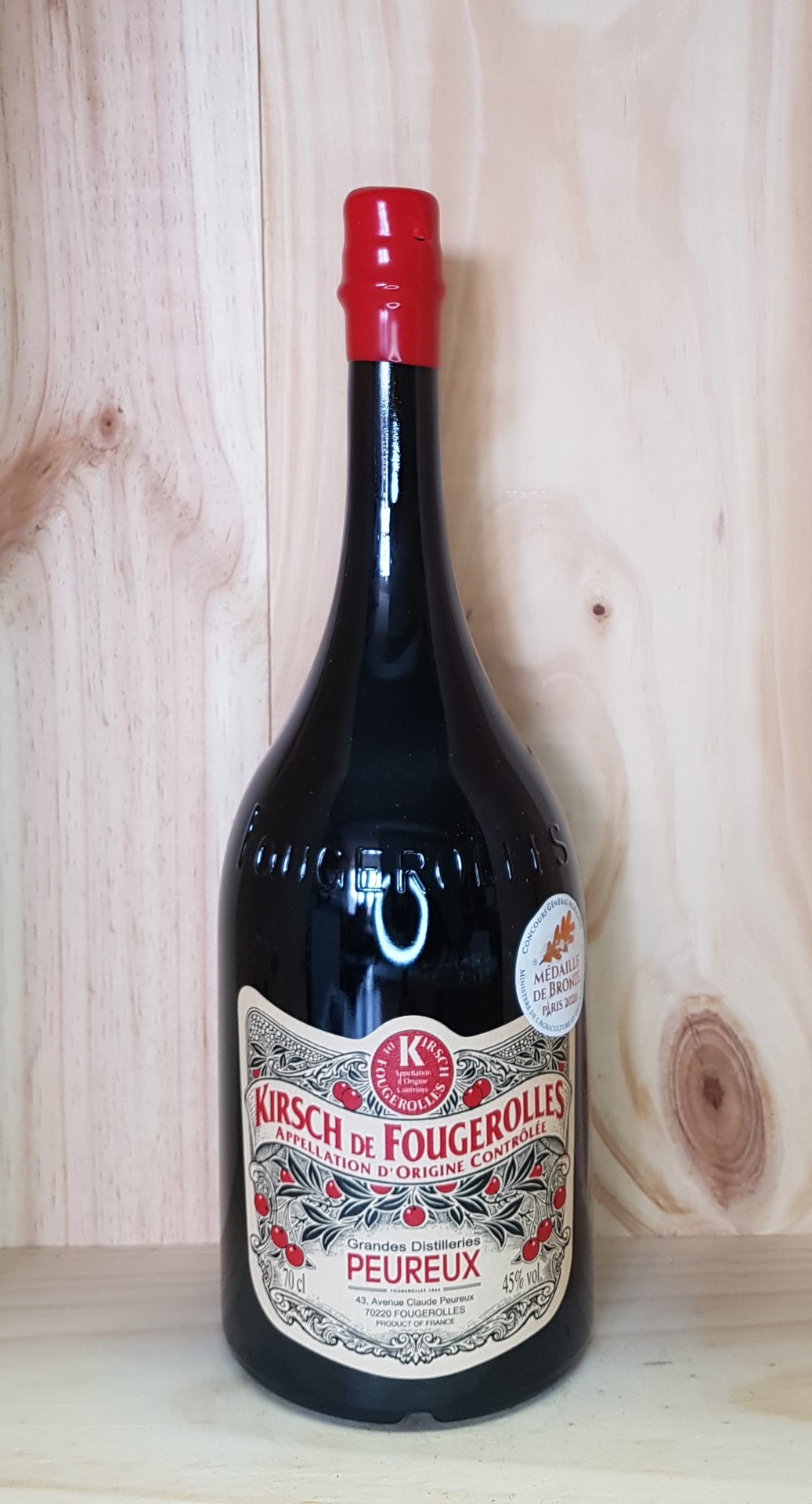 –Elaboration : Eau-de-vie de cerise AOC élaborée à partir des variétés guigne et merise. Maturation de 6 mois minimum avant commercialisation