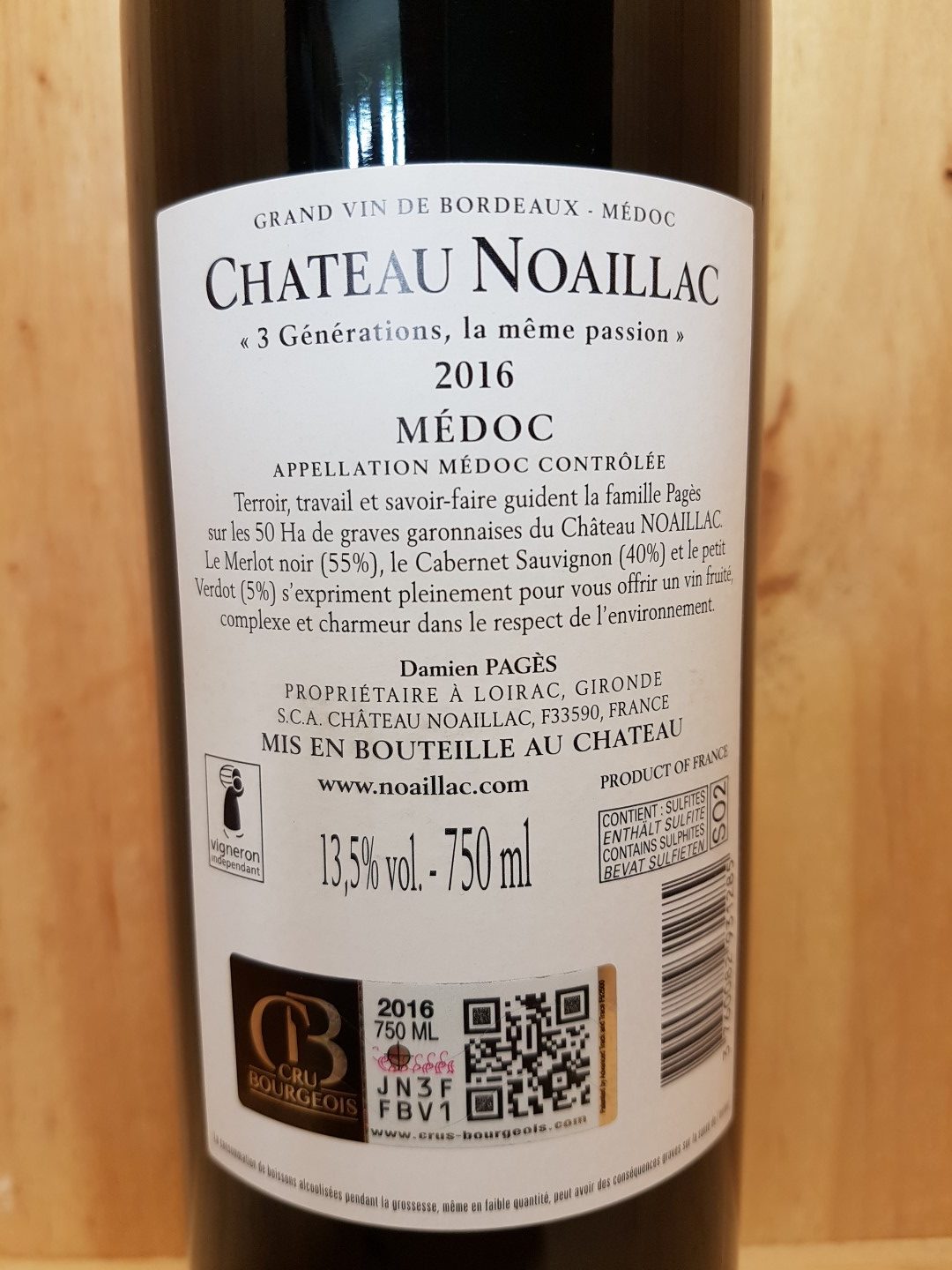 – Cépages : 40 % Cabernet Sauvignon, 55 % Merlot, 5 % Petit Verdot